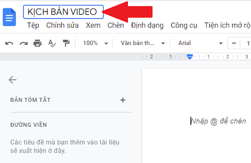Bước 4: Đổi tên tại ô “Tài liệu không có tiêu đề”. Đổi lại thành “Kịch bản video…”